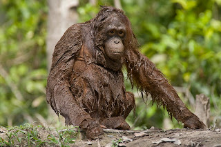 These particular orangutans have been saved by an orangutan sanctuary after their homes were destroyed. Adapting to water has created a new, fun hobby for these relatives of ours...swimming and wading! Here's a picture of an orangutan enjoying the water after a meal.